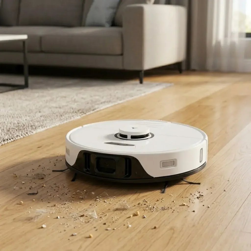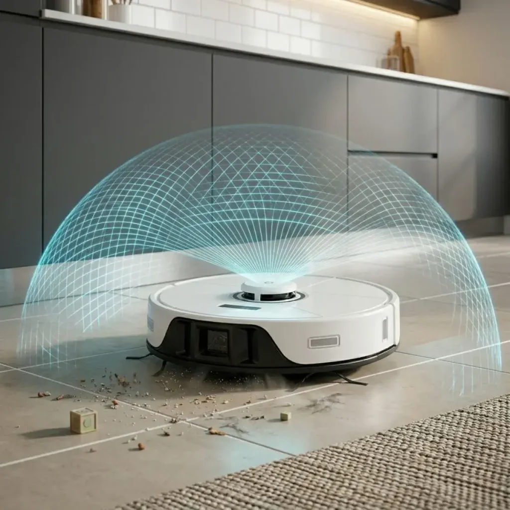 Sistemul LiDAR scanează fiecare cameră și stabilește traseul optim. Evită mobilierul și curăță inclusiv zonele greu accesibile, sub pat sau canapea.